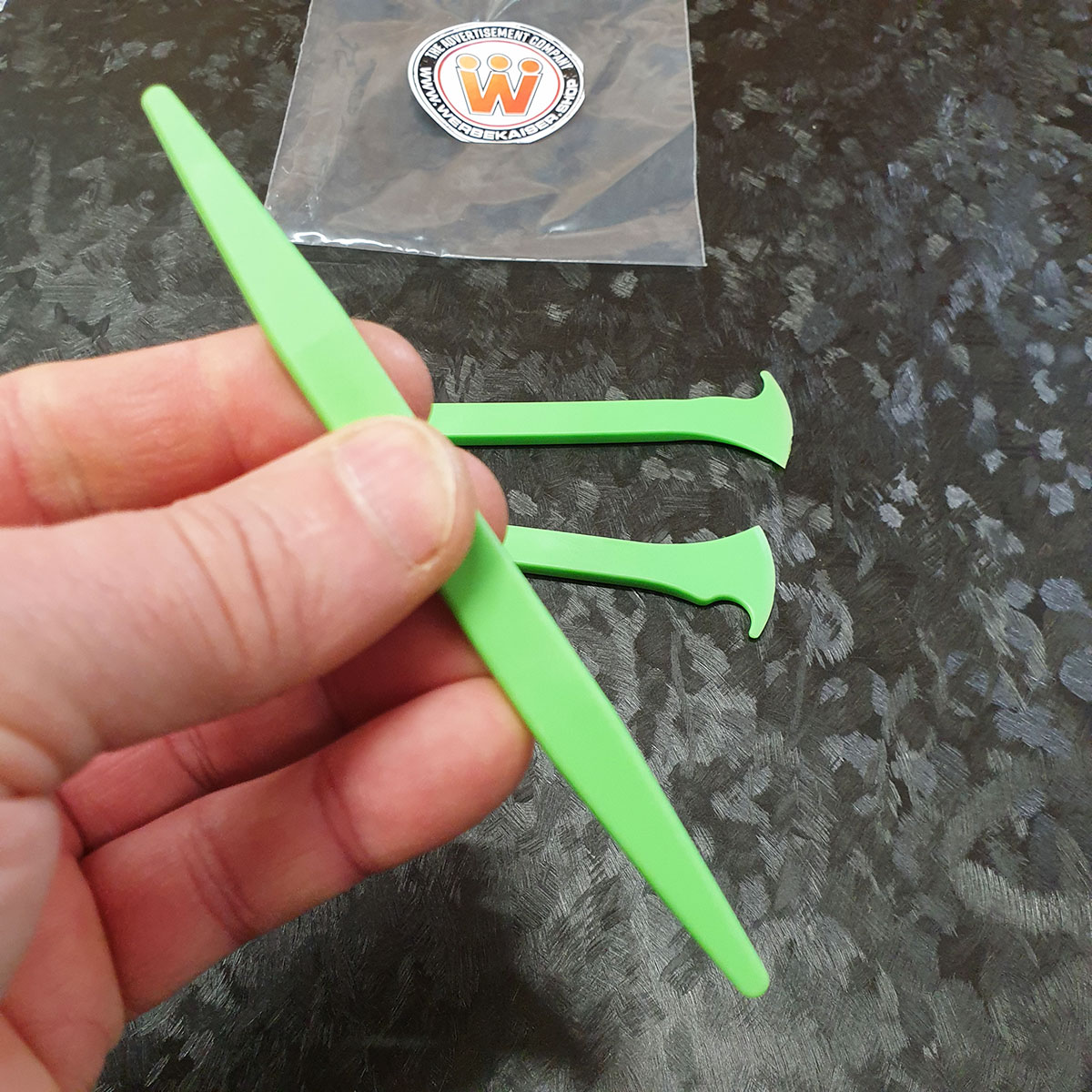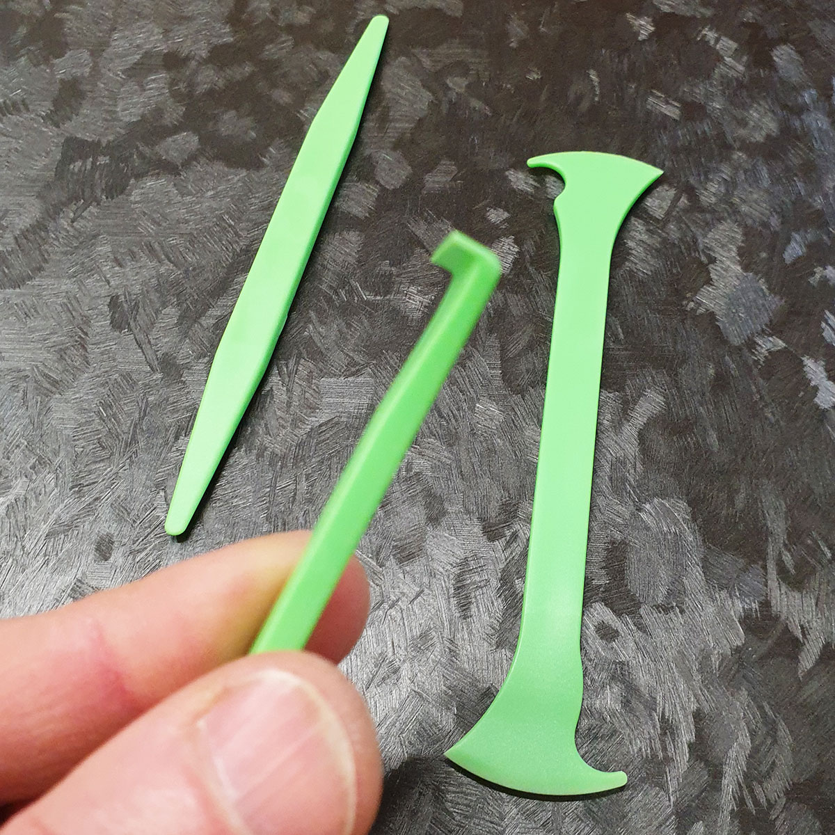 Das 3er Set Edge Fitting Tools, das speziell für car wrapping, Fahrzeugfolierung und Fahrzeugbeschriftung entwickelt wurde, besteht aus drei spezifischen Rakel- bzw. Werkzeugen, die darauf ausgelegt sind, Gummidichtungen anzuheben und die Folie optimal unter diese einzulegen.