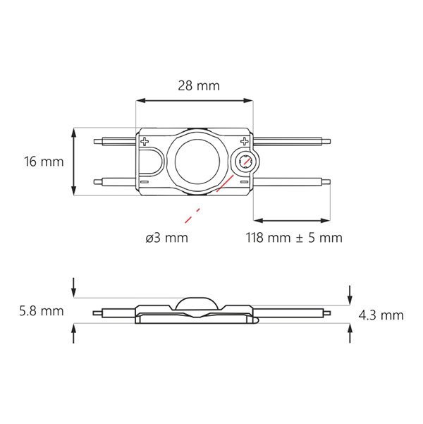 - Spezielle Linse Typ bat-wing, die noch besser das Licht zerstreut, hilft Anzahl der Module in einer Reklame zu reduzieren und vergrössert die Homogenität der Beleuchtung