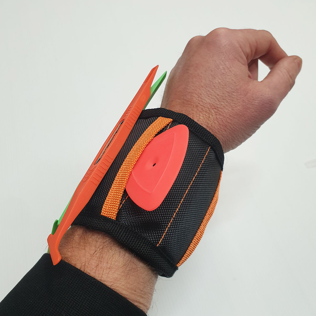 Die Rückseite des Armbands ist super bequem, weich und atmungsaktiv, damit es den auch bei längerem Tragen angenehm bleibt. Starke Magnete stellen sicher, dass Werkzeuge stets griffbereit bleiben und